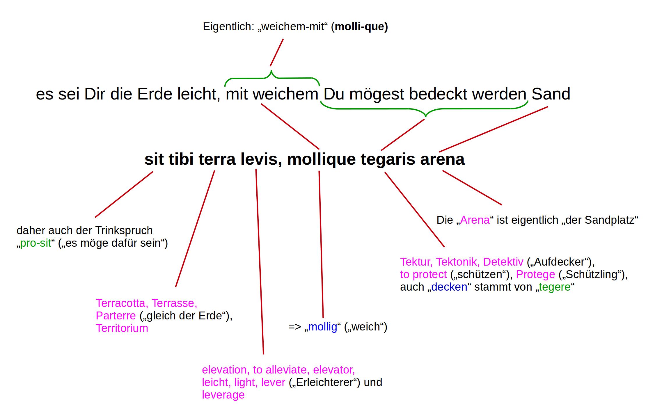 Die lateinische Silbe fa bildet eine ganze, auch im Deutschen bedeutsame Wortfamilie farisprechen => infantil, der Infant, die Infanteriefacundusberedtfatumfatefatalisschicksalhaft, von Gott gesprochen, fasgöttliches Recht, von Gott gesprochen <=> nefasFrevel, das Ungöttlichenefariusruchlosfanumdas Heiligtum, Gott Geweihte => profan, das Vor-Göttliche == Weltliche, fabuladas Gesprochene, die Fabel, faterito confessKonfession, der Glaubensspruch oder Professor (wörtlich der Verkünder), sowie famadie Kunde/das Gerücht