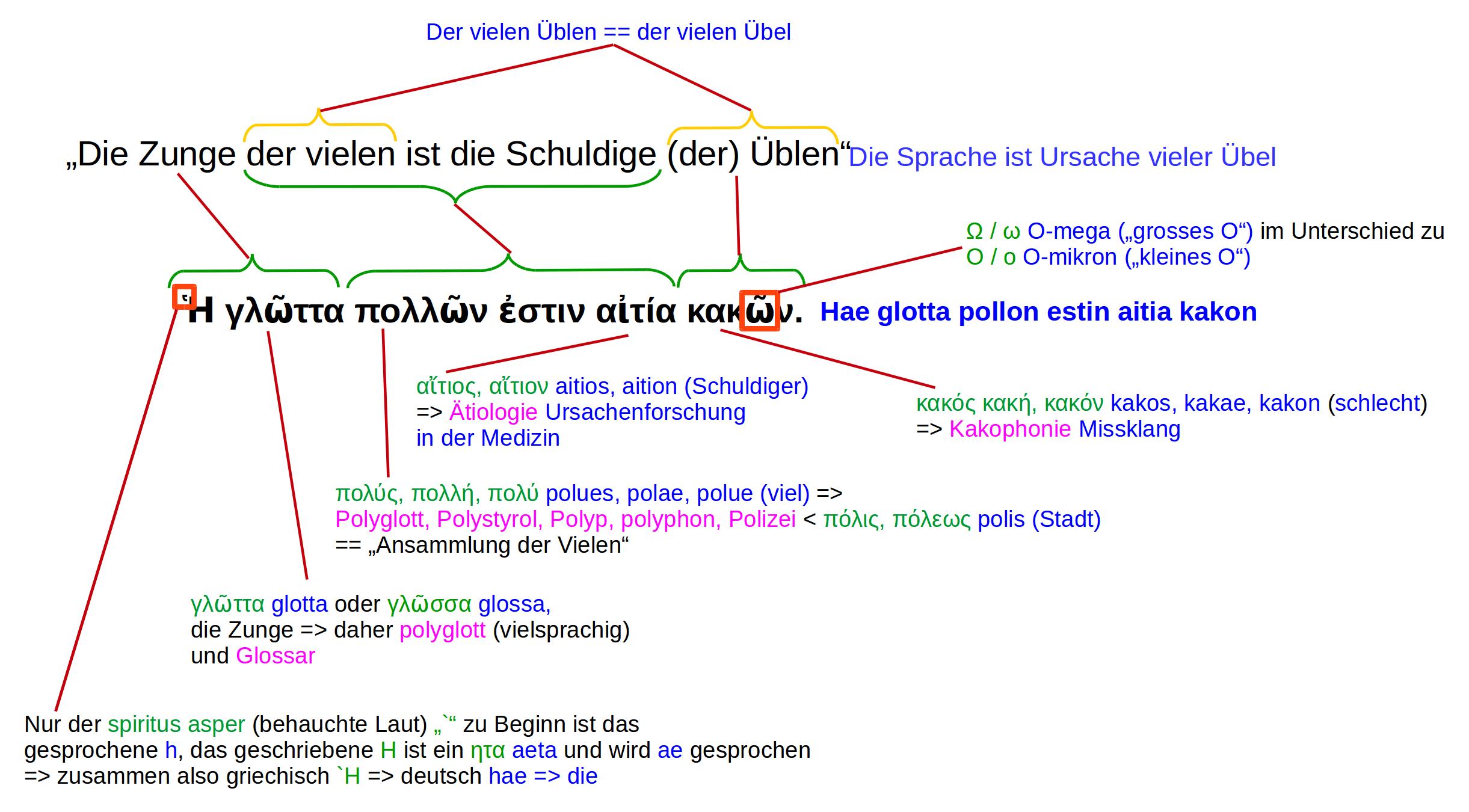 Dabei ist das 'h' von haedus nur der kleine Akzent auf dem ἡδύς, der sogenannte spiritus asper, also wörtlich "rauhe Hauch"