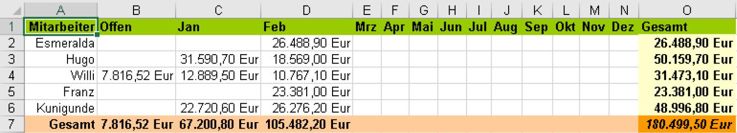 - einer Rangeangabe, welche sich gemäß Gültigkeitsbereich entweder nur auf die folgende Zeile oder einen beliebigen Zellverbund (Zeile(n), Spalte(n), Zelle(n)) bezieht