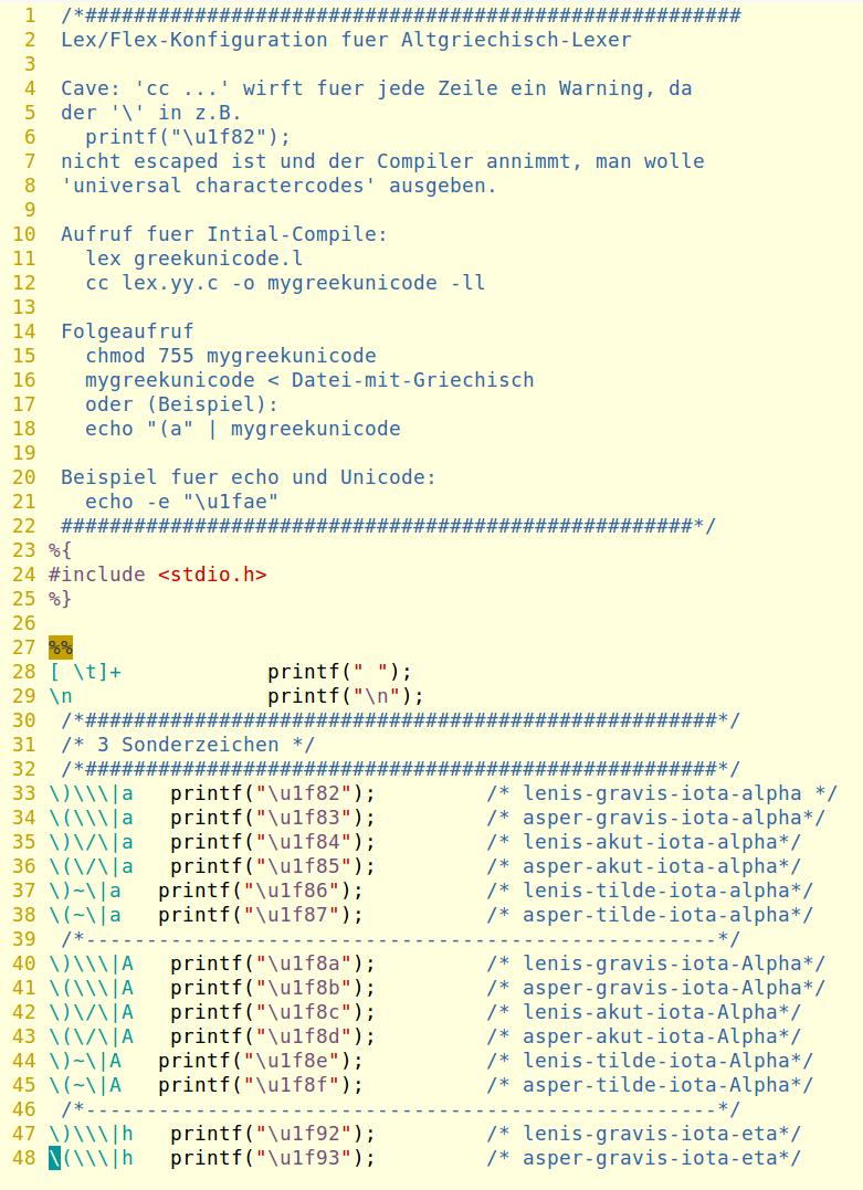 Lexer für die Abbildung jedes griechischen Zeichens als Betacode auf dasjenige römische Zeichen mit derselben Positionsnummer im römischen Alphabet