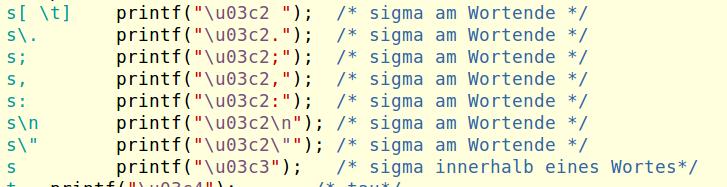 Ausschnitt 2 für verschiedene Behandlung von ς und σ in Wortinnerem und an Wortende