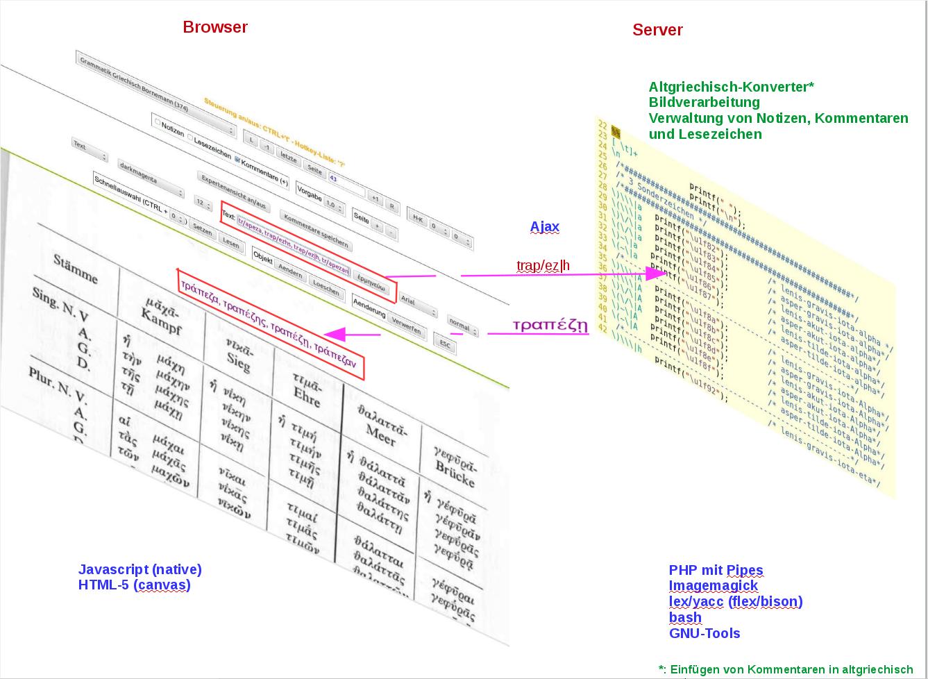 Ablauf- Eingabe von Betacode im Browser (z.B. trap/ez|h)
